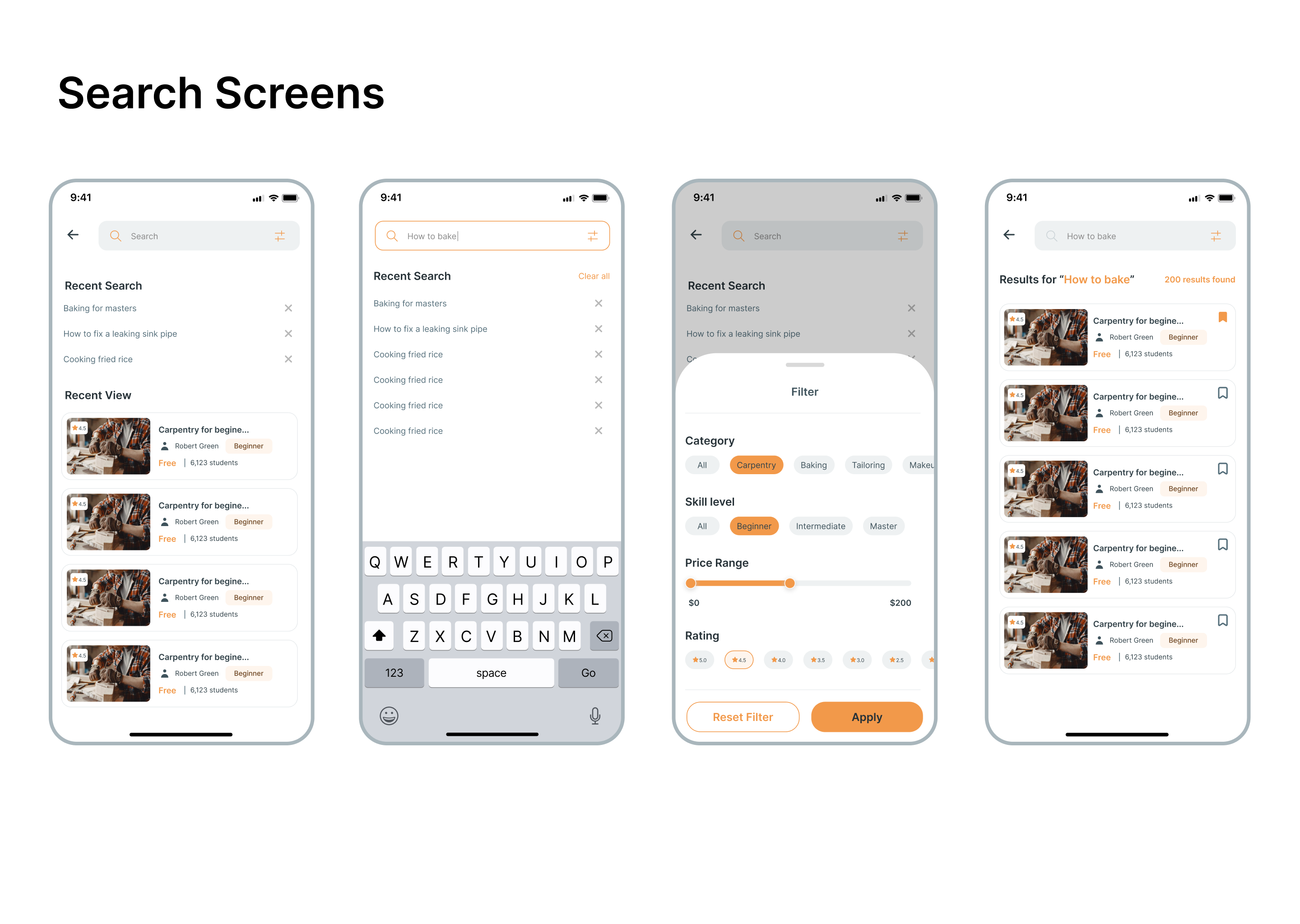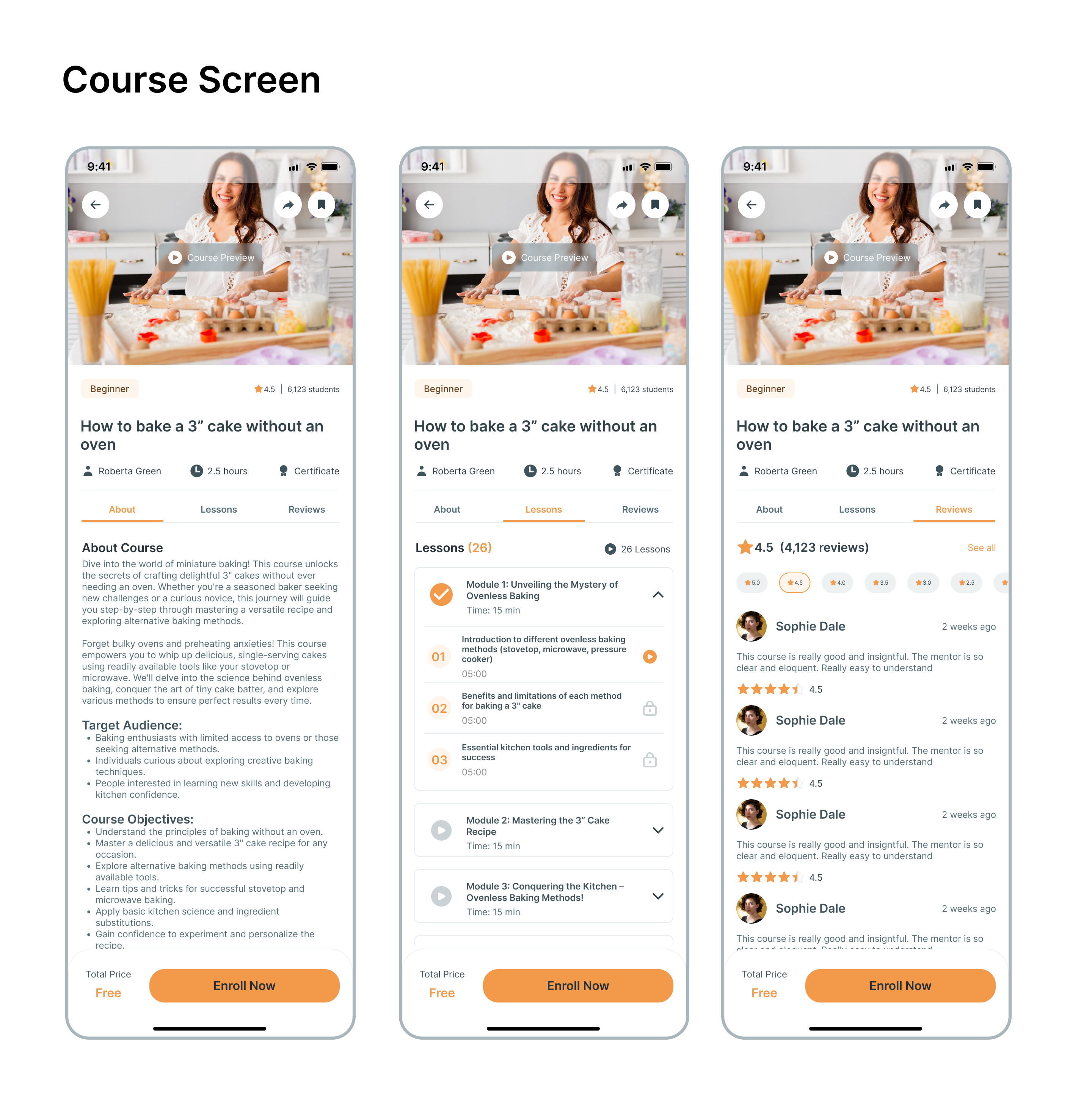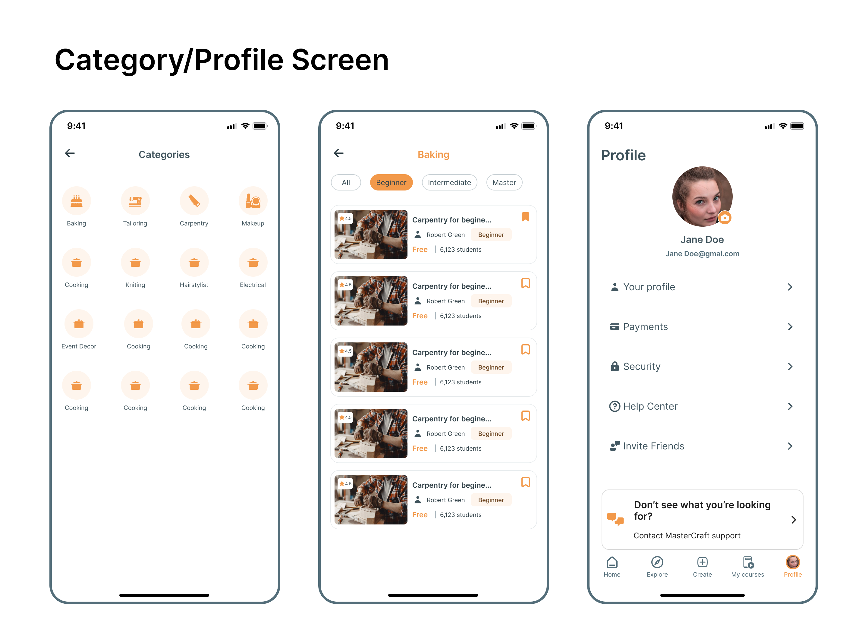 I designed 32 mobile screens covering the complete user journey, from onboarding and skill discovery to active learning, community engagement, and progress tracking. Every screen was optimised for mobile-first usage with simple navigation and motivational elements.